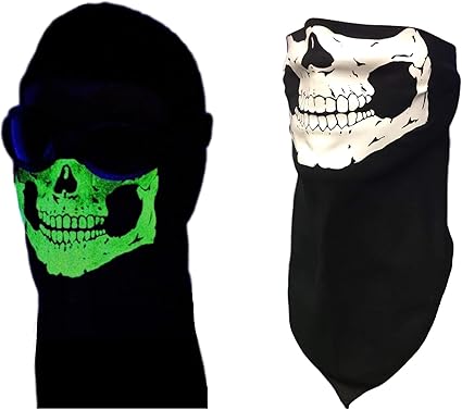 Amazon Com Usa Made Black Cotton Glowing Skull Bandana Face Cover